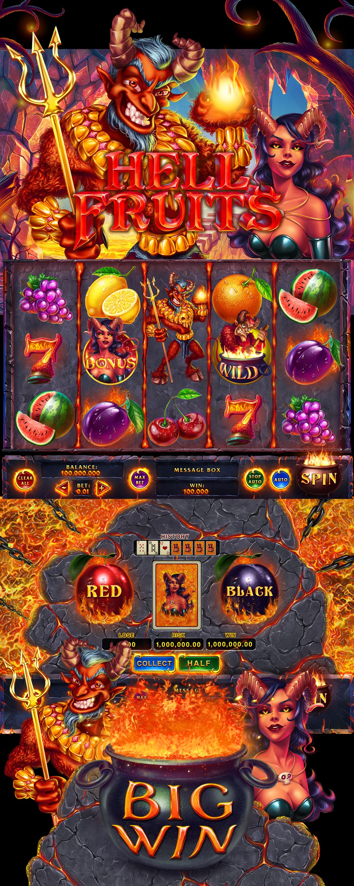On the splash screen of the game, we see the entrance to Hell, the steps leading into the unknown, around the hot melting magma, oak-sorcerers with frightening branches. The Fire Demon and the Devil-Warrior were depicted on different sides of the screen with malicious smirks and burning eyes, they seem to beckon to their side, so we can feel the atmosphere of the Other World in the whole. The main characters are invited to plunge into the “Hell Fruits” slot and try not to burn your hands, try your luck and leave with the treasures. If you are interested in this product, you can purchase it at our store – https://slotopaint.com/product/hell-fruits/.