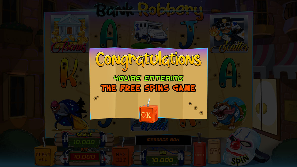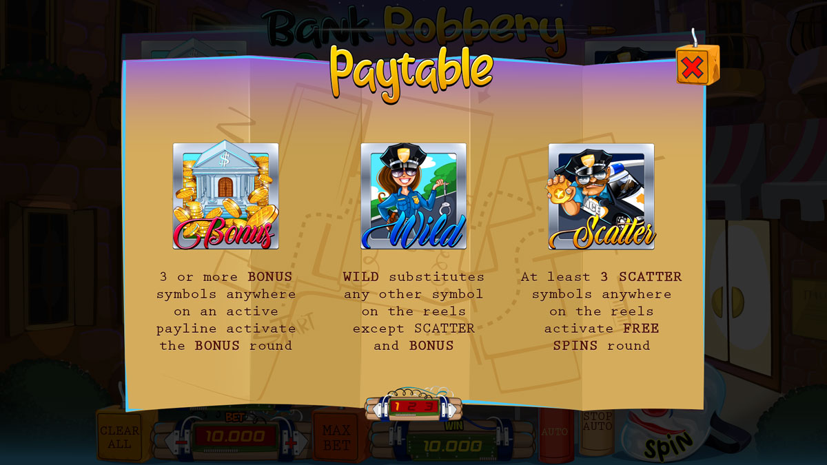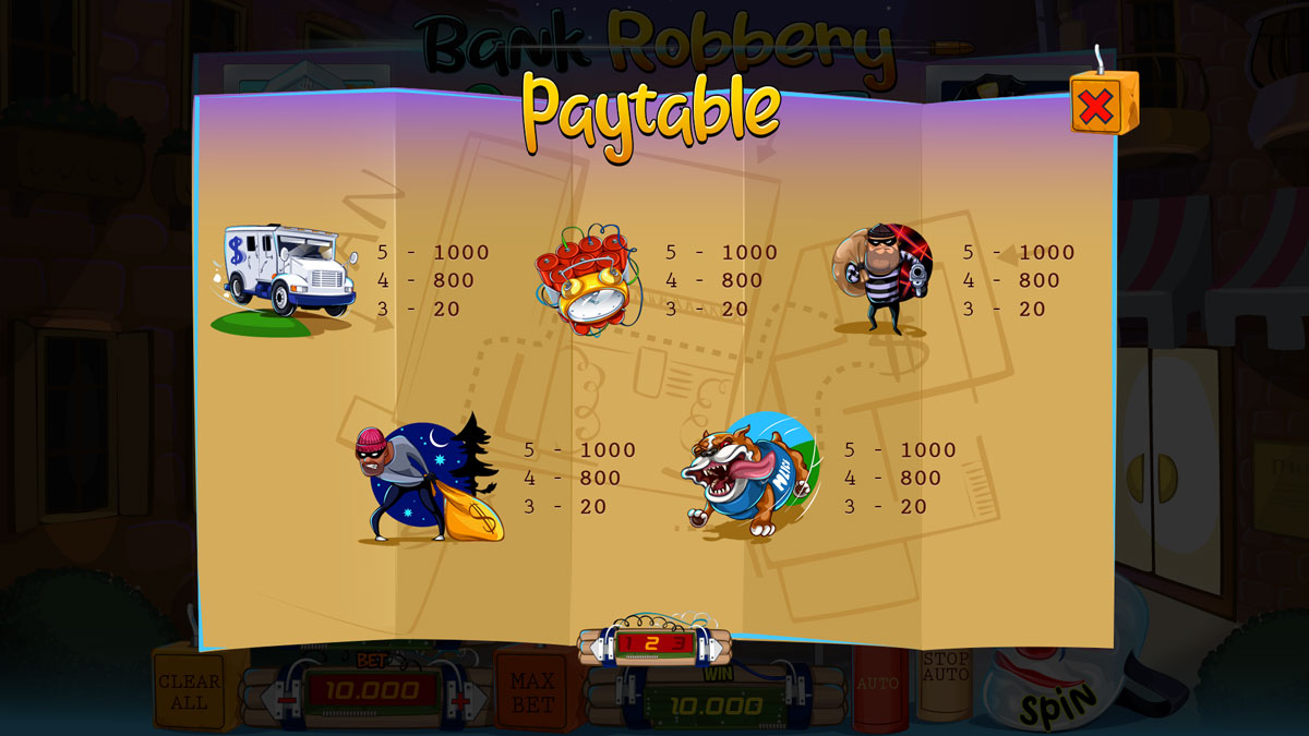 Robbing the Slots City Bank will bring huge profits to new robbers. Their mission is to sneak in quietly and discreetly, and open all the safes, unleashing the wealthy lines. Collect all your Free spins and Bonus rounds. Unique Gold bars spin, attract, and entice bandits. Collect tempting combinations and empty your online casino pot to the limit.