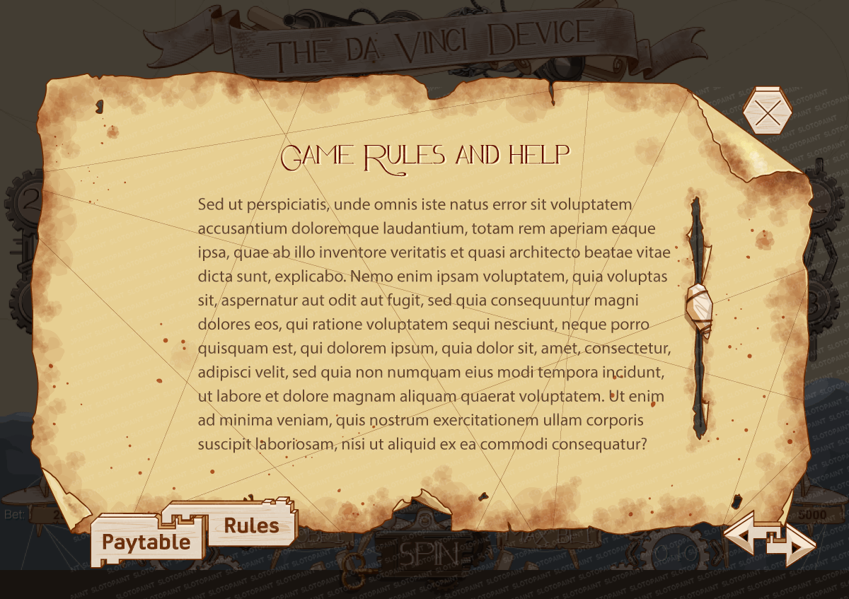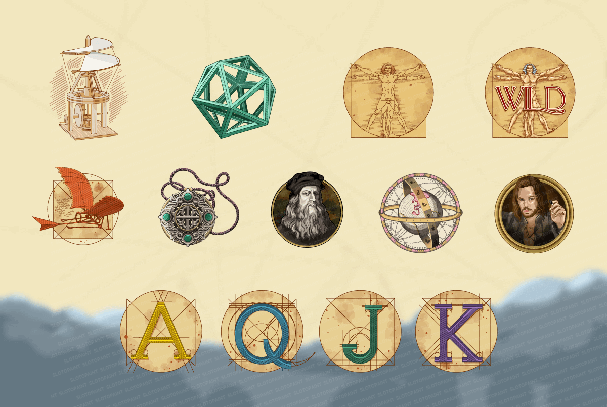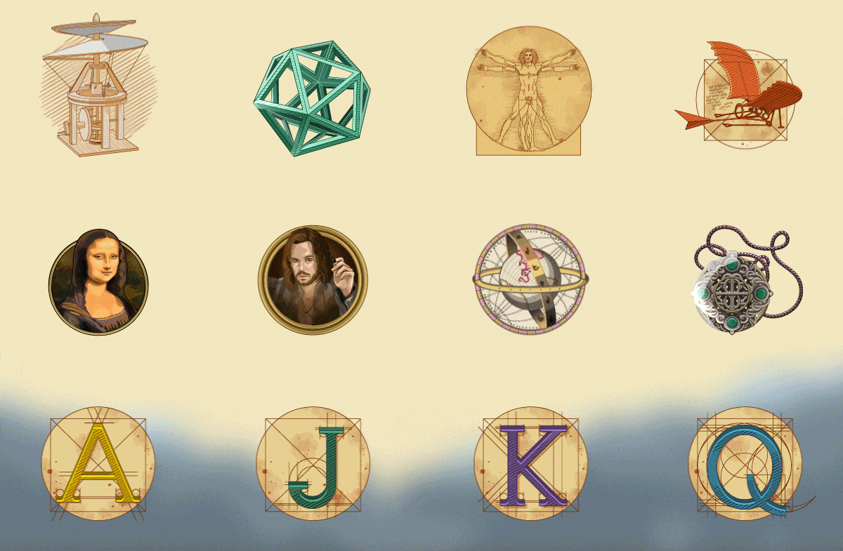 For all fans of puzzles and gambling entertainment, we have prepared a special surprise. Now you can become a full-fledged owner of a set of graphic materials and illustrations specially designed for the slot machine “The Da Vinci Device”. This set is designed in vector style and contains: a unique thematic logo, the main background image, a set of themed game symbols, as well as a game interface and much more. Solve all the riddles of the great Da Vinci and get unique winnings in the slot machine “The Da Vinci Device”.