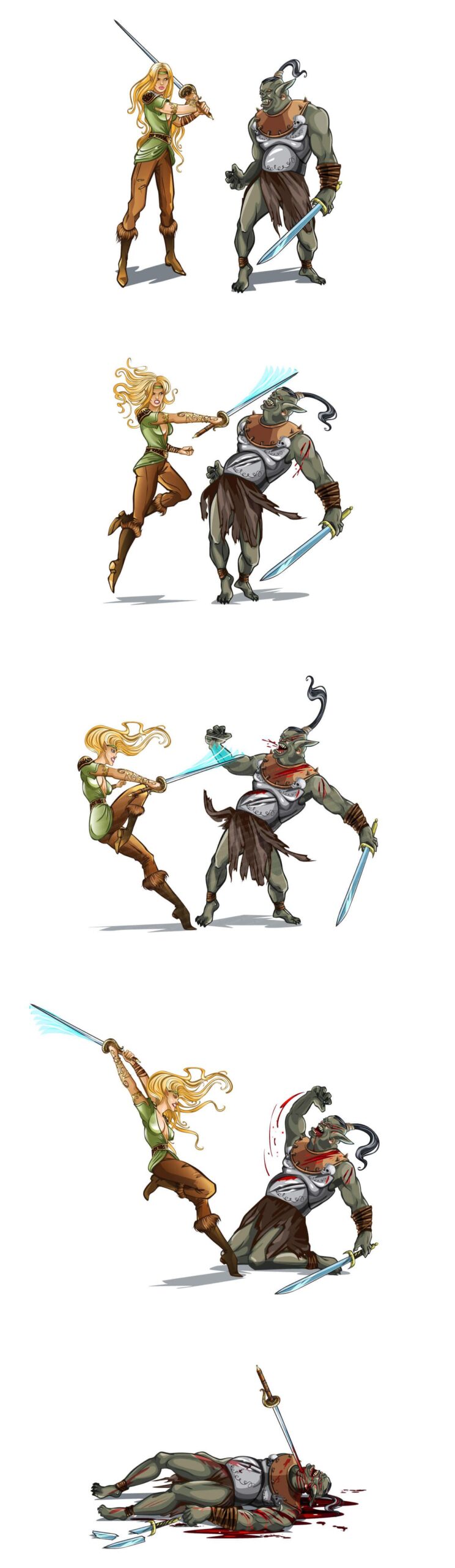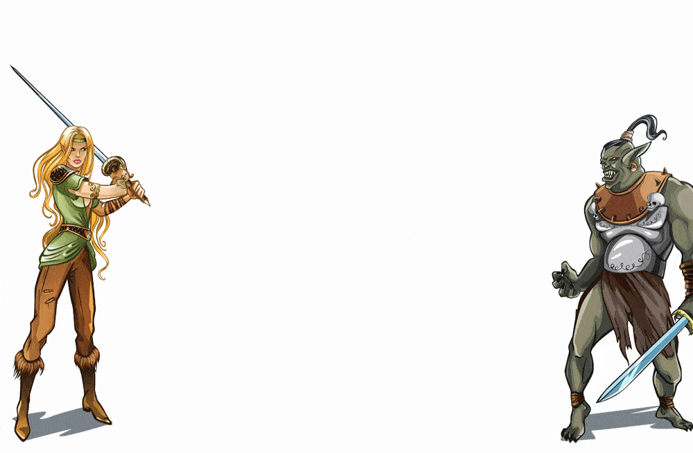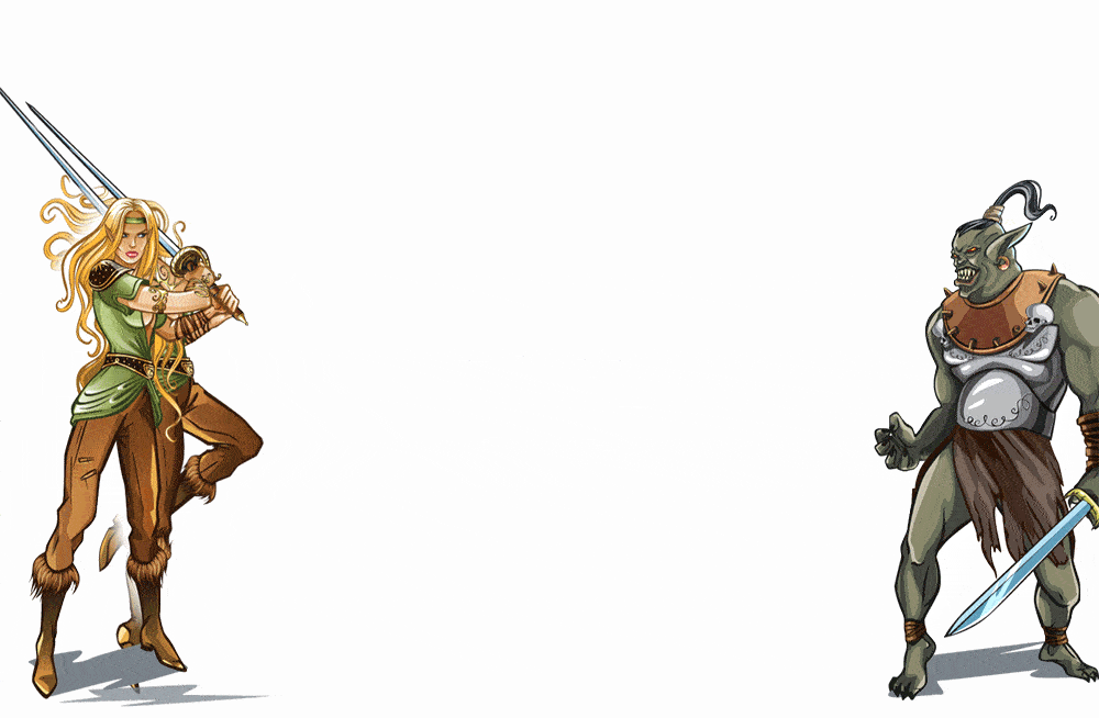 Here we decided to show you the animation process of the battle between the forest warrior and a leader of orcs.