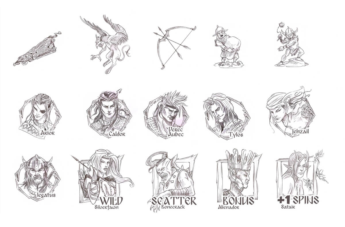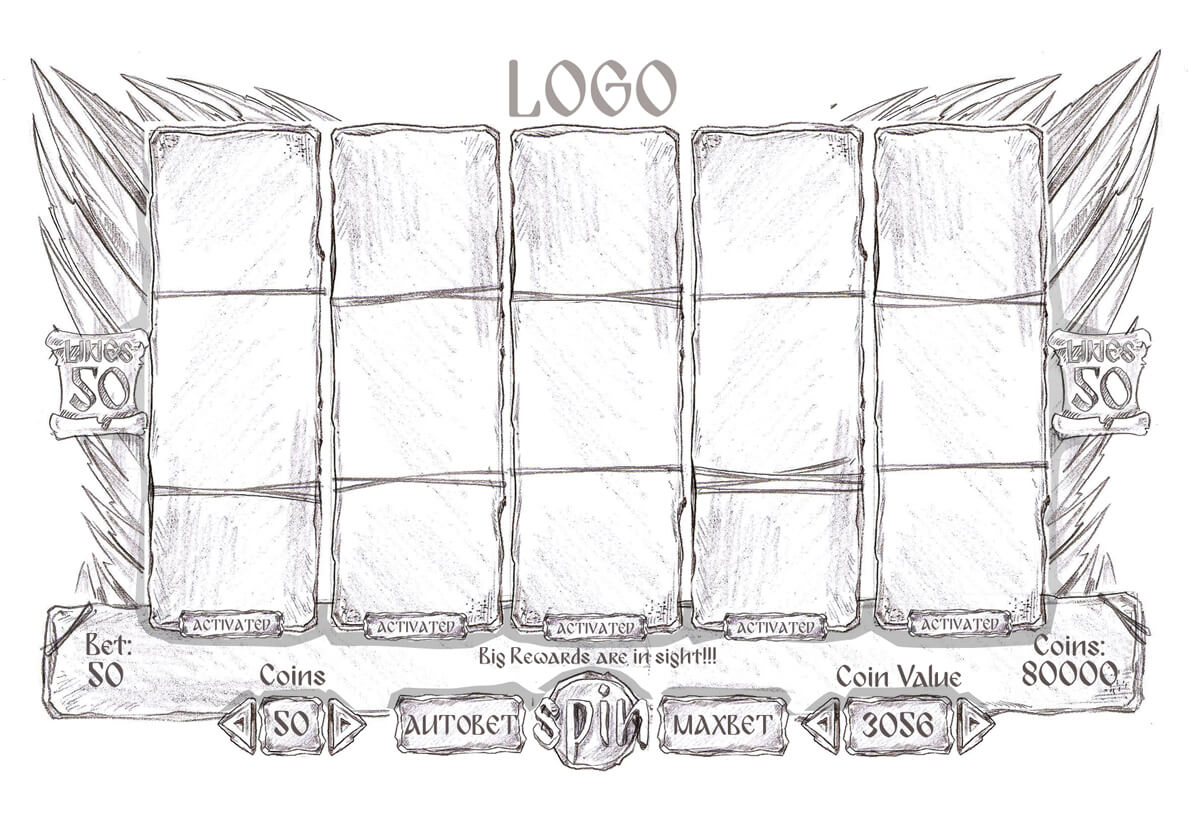 Development of preliminary sketches of gaming symbols for the slot machine.