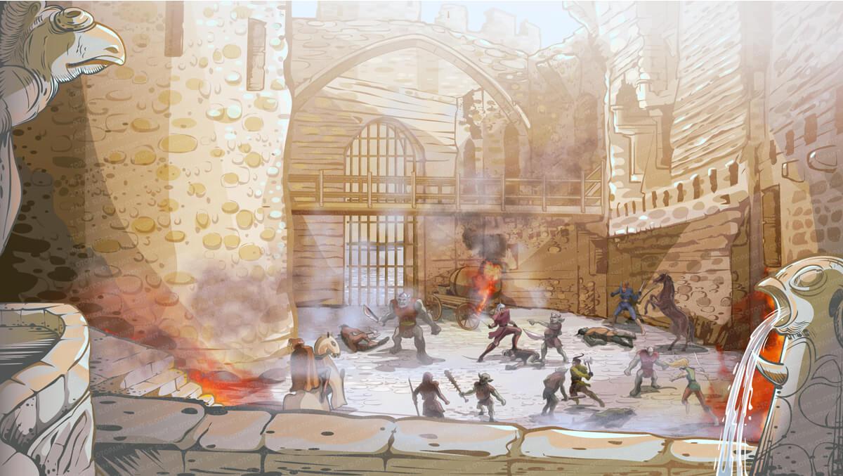 At one of the backgrounds you can see the siege of the Royal Castle, the fierce fighting, and at another – snow-capped mountains and the castle, looking for its peaks in the sky.