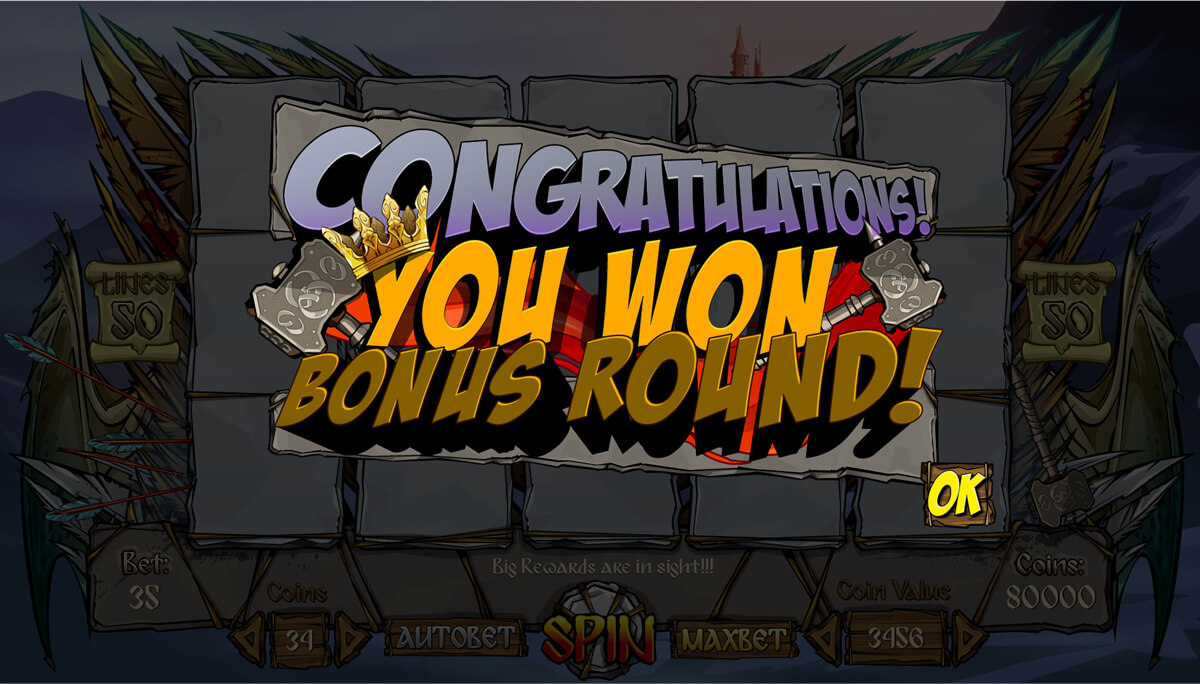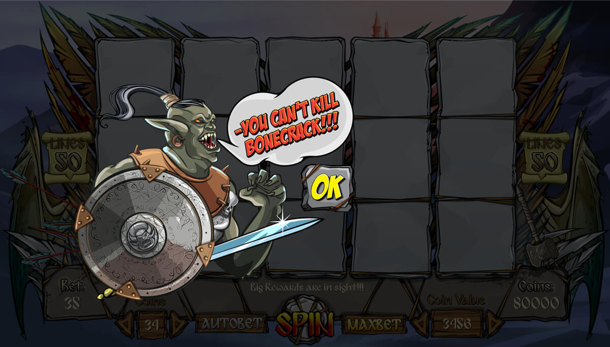 Additional pop-up screen where a leader of orcs challenges you for the next bonus game.