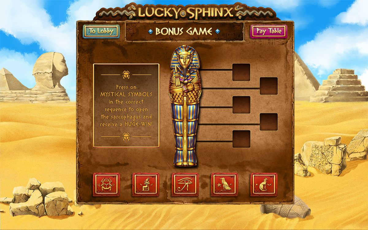 Under endless and sand dunes, caused by the southern winds, the tombs are hidden, but the path to them is hidden and covered with millions of sand grains. Only one day in a year, the sands are showered in depth, exposing the entrance to the tombs of the Pharaohs, where the number of secrets and treasures exceed the number of bright stars in the night cloudless sky. Many different researchers and art historians have tried to find out, in what kind of day there is a wonderful event, but those who knew and were able to penetrate into the dark bowels of the treasuries, couldn’t go out from there in time and were buried there alive. To your happiness, you have absolutely nothing to fear, and all fears of the unknown remain in the past, because we have prepared for you an absolutely secure version of cryptstalker in our slot machine game “Lucky Sphinx”.