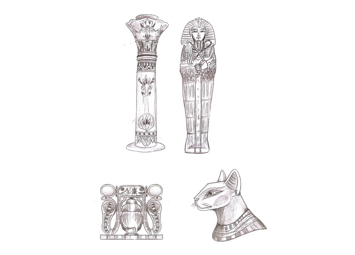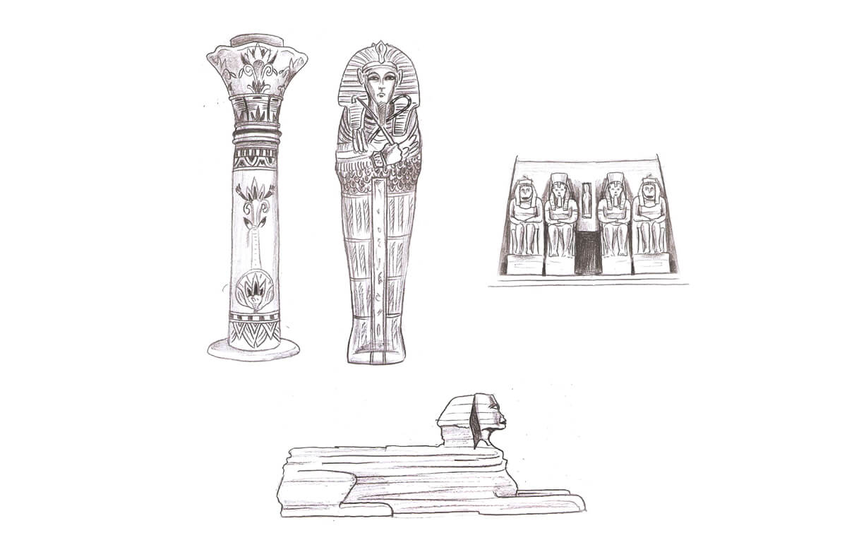 Sketches. Development of preliminary sketches of gaming symbols for the slot machine.