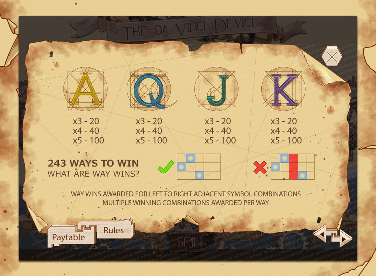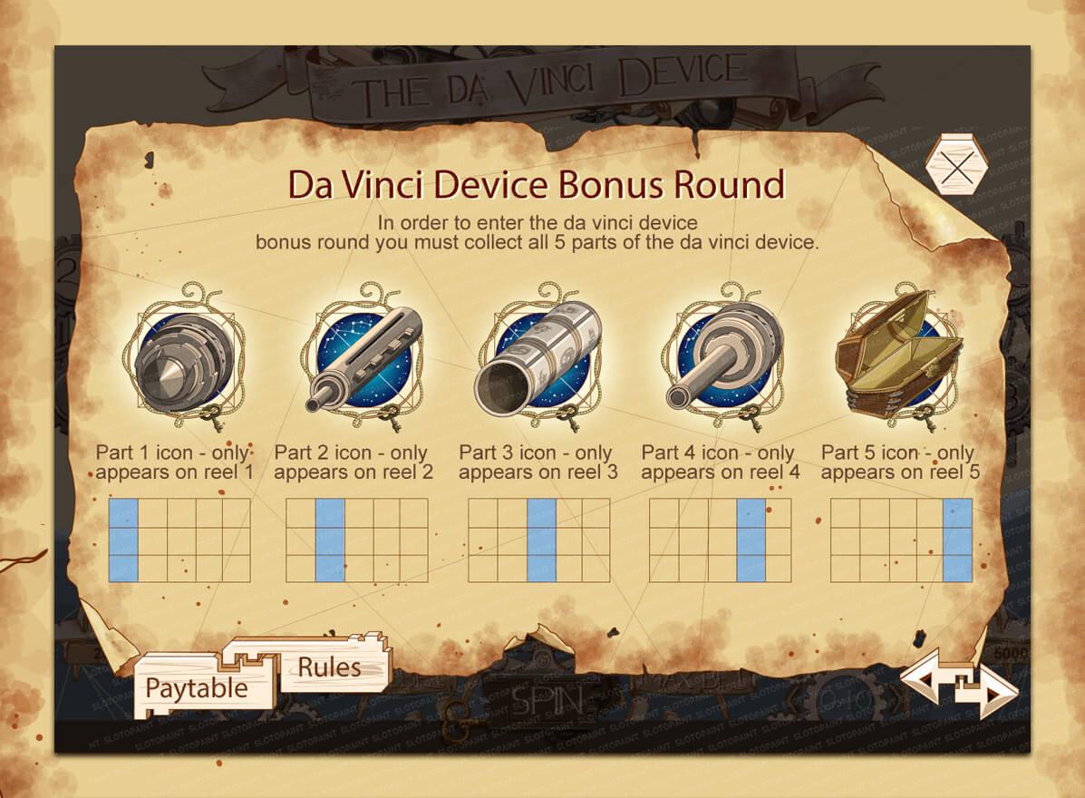Highly detailed vector graphics had never before looked so realistic and now you can join the great ideas of the talented scientist in our design new slot machine “The Da Vinci Device”.