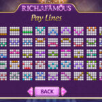 This screen is an auxiliary table of rules and payments, where the player can get acquainted with all the numerical values that are awarded for simultaneous getting of certain symbols. The more symbols of a certain type appear simultaneously on the game reels, the more winning points you get. At the bottom of the screen you can find combinations of winning lines.